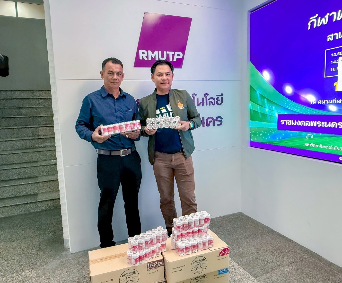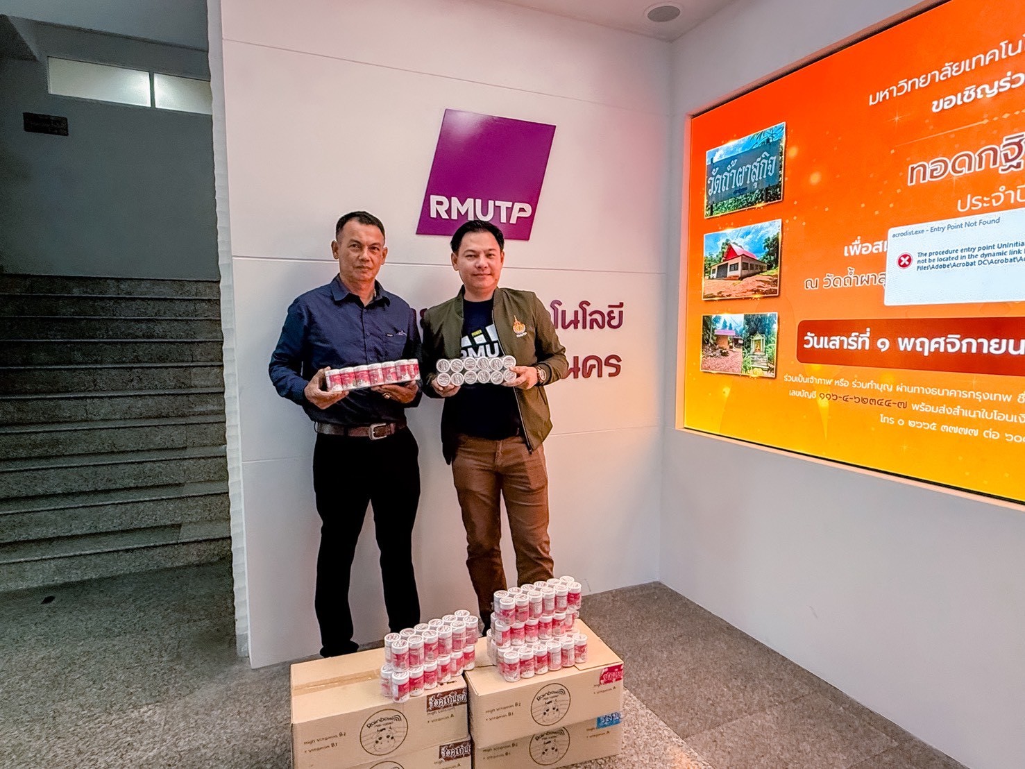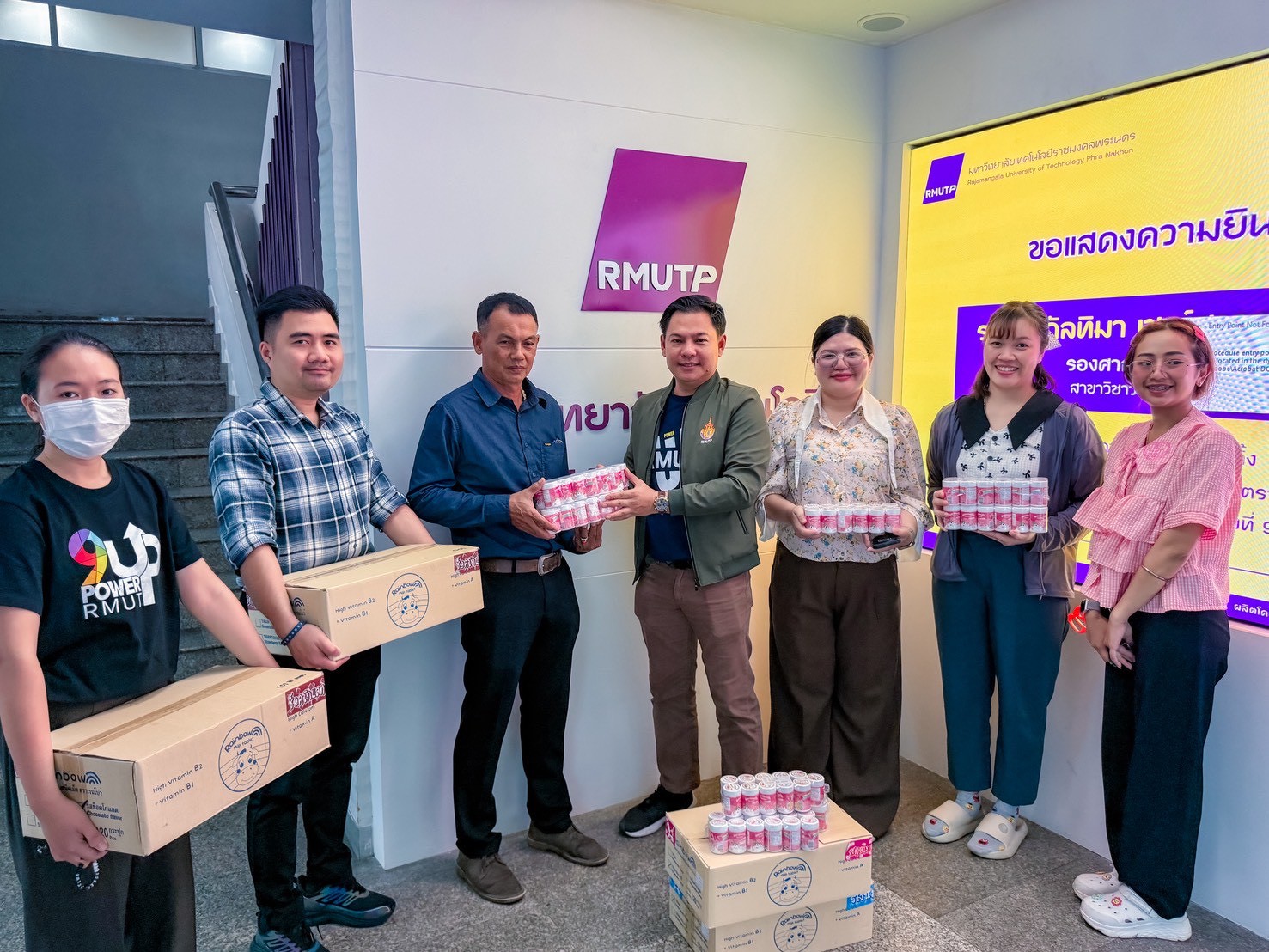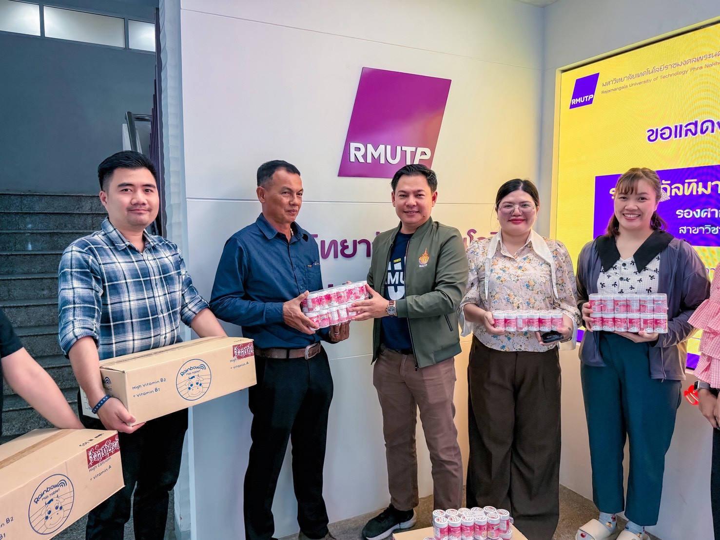สถาบันวิจัยและพัฒนา มหาวิทยาลัยเทคโนโลยีราชมงคลพระนคร ร่วมกับบริษัท ชาริสสยาม จำกัด มอบนมอัดเม็ดที่หมดอายุหรือใกล้หมดอายุ ได้แก่