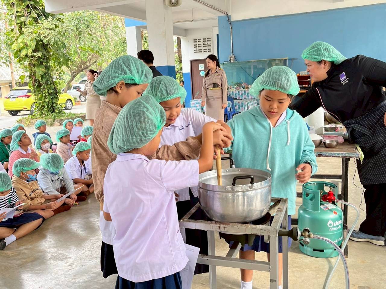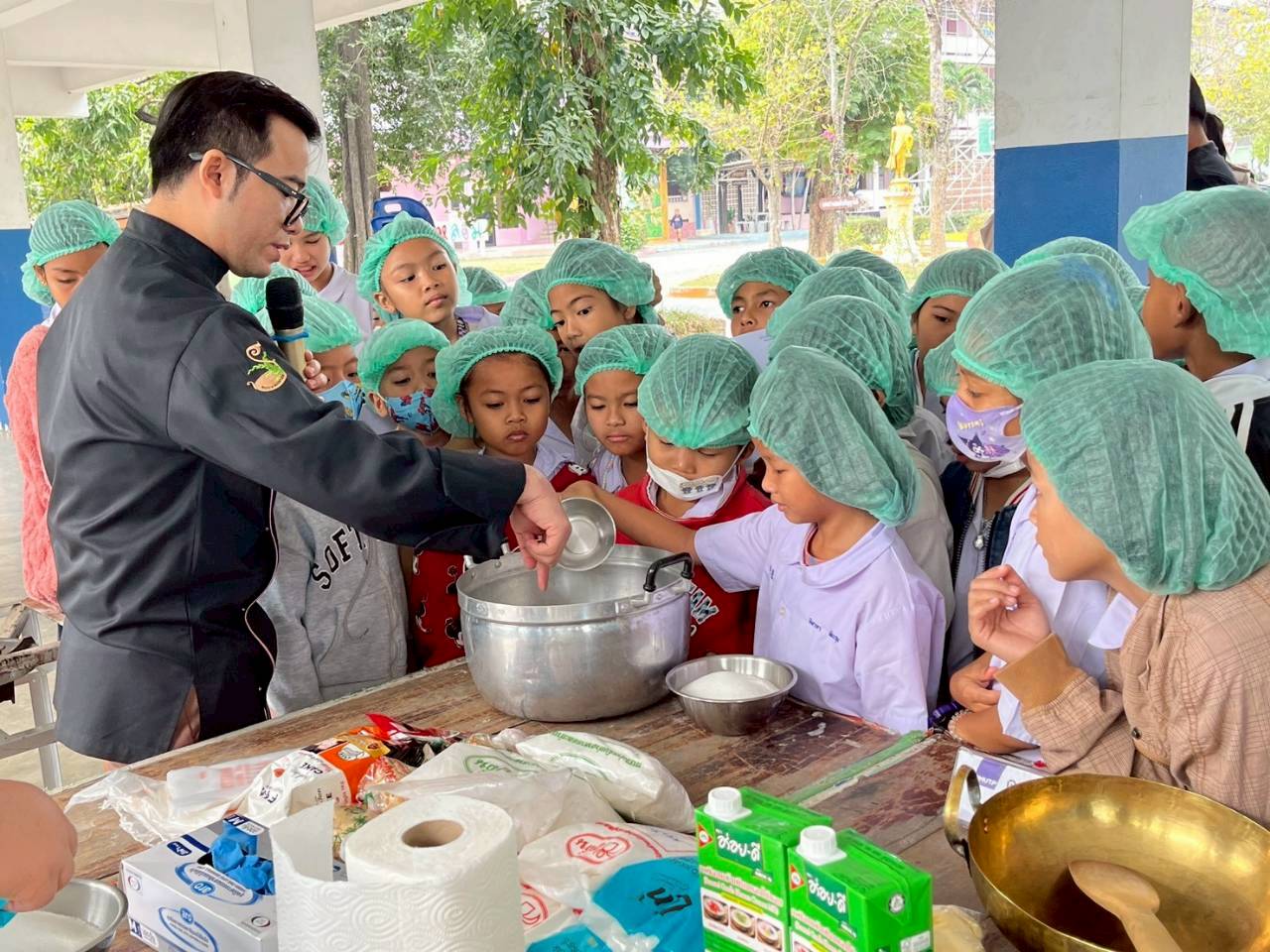 มทร.พระนคร ร่วมกับบริษัทไทยเบฟเวอเรจ จำกัด (มหาชน) พร้อมด้วยวิทยากรจากคณะเทคโนโลยีคหกรรมศาสตร์ มทร.พระนคร ได้แก่ ผศ.ดร.เชาวลิต อุปฐาก และ ดร.เปรมระพี อุยมาวีหิรัญ ลงพื้นที่บรรยายและฝึกปฏิบัติ หลักสูตรการทำน้ำวุ้นใบเตย และเค้กเปียกอ่อนใบเตย แก่นักเรียนและครูในโรงเรียนบ้านหนองงูเหลือม (ประชารัฐบำรุง) จังหวัดนครปฐม
